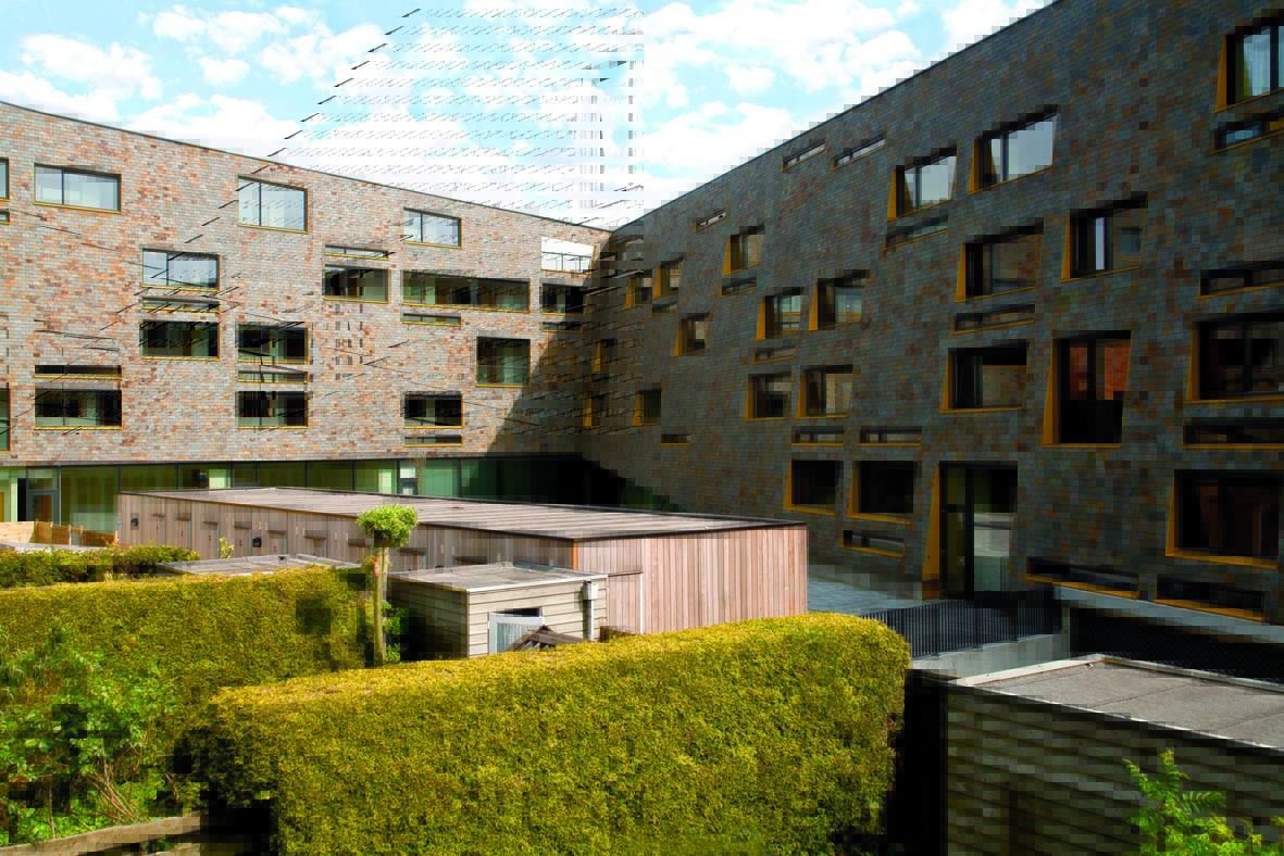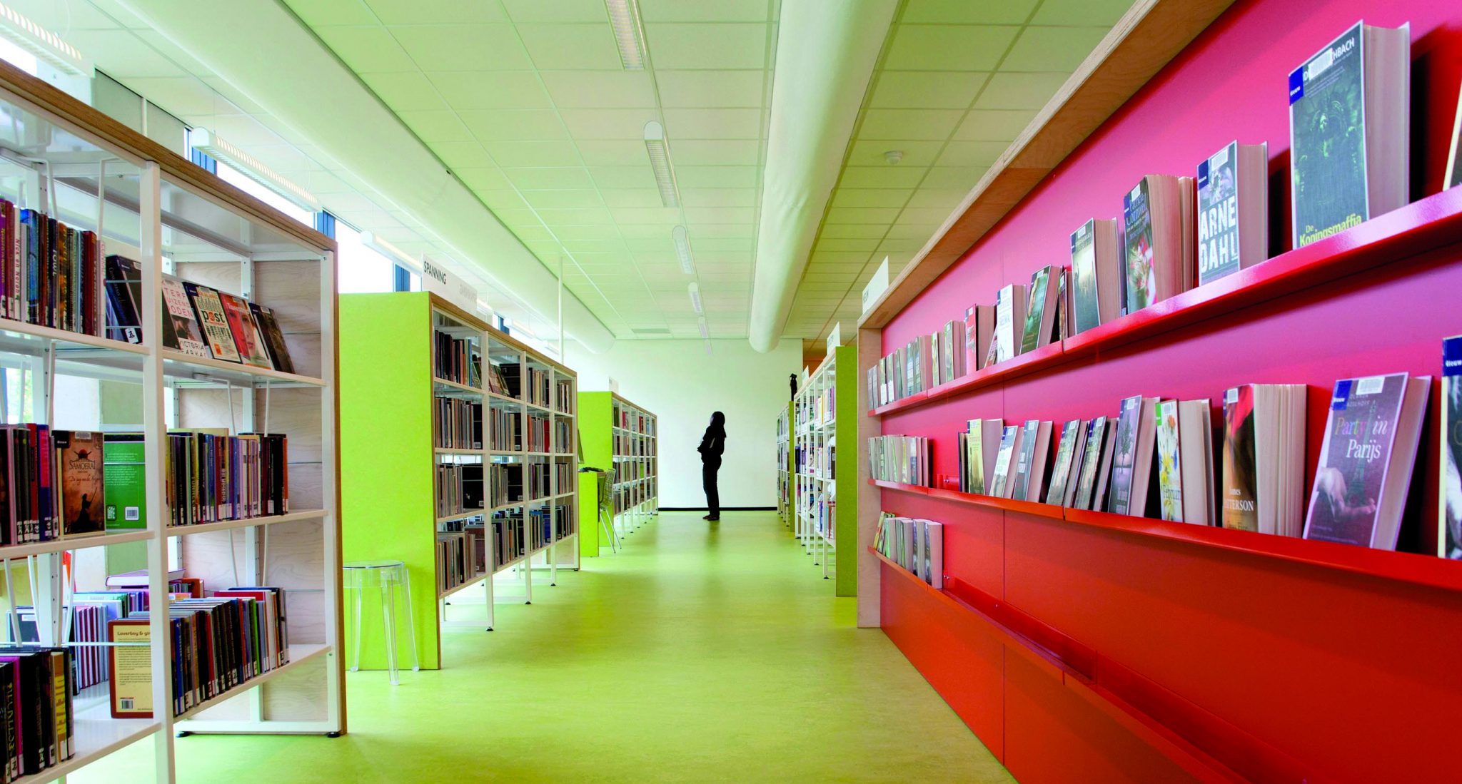 Op de plek van de oude bibliotheek in Hoogkerk is een nieuw multifunctioneel gebouw gerealiseerd. Een ontwikkeling van Woonstade. Met de invulling van een buurtcentrum, bibliotheek, zestal lokalen voor de naastgelegen Anne Frankschool, 25 zorgappartementen voor stichting NOVO en 50 appartementen voor de lokale woningbouwvereniging kent het gebouw veelzijdige gebruikers. Het gebouw richt zich met schuine gevelvlakken op haar omgeving en de maken het tot een dynamisch en spectaculair gebouw. Het stedenbouwkundig plan voorzag in een P-vormig gebouw dat opgebouwd was uit 3 blokken van oplopende hoogtes. Wij hebben in goed overleg met alle betrokkenen een Z-vormig gebouw gemaakt met een schuin dak. Door het schuine dak ontstaan bijzondere appartementen met hoge plafonds en grote dakterrassen. Het gebouw richt zich met schuin afgesneden koppen op zijn omgeving en de voor- en achterover hangende gevels maken het tot een dynamisch en spectaculair gebouw. Op de beganegrond van het hoge deel bevinden zich de bibliotheek en de school. Zij hebben volledig glazen gevels. Dit deel ‘draagt’ het met natuurleien beklede volume waarin zich de appartementen bevinden. Waar het glazen deel ophoudt zakt het volume naar beneden tot het maaiveld en vormt een poort tussen de wijk en het buurtcentrum.
